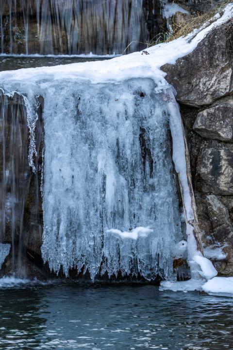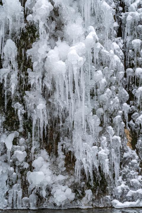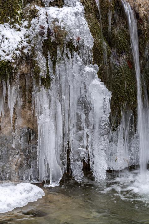 Kleinere seitliche Eiszapfengruppe am Schoßrinn Wasserfall