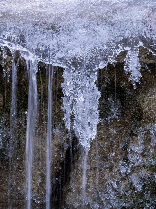 Ausschnitt aus Eissäule bei Wasserfall im Lochgrabenbach