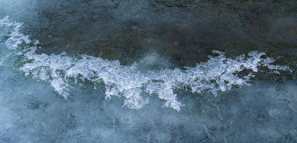 Ausschnitt aus einer Eiskristall Figur auf dem zufrierenden Lochgrabenbach