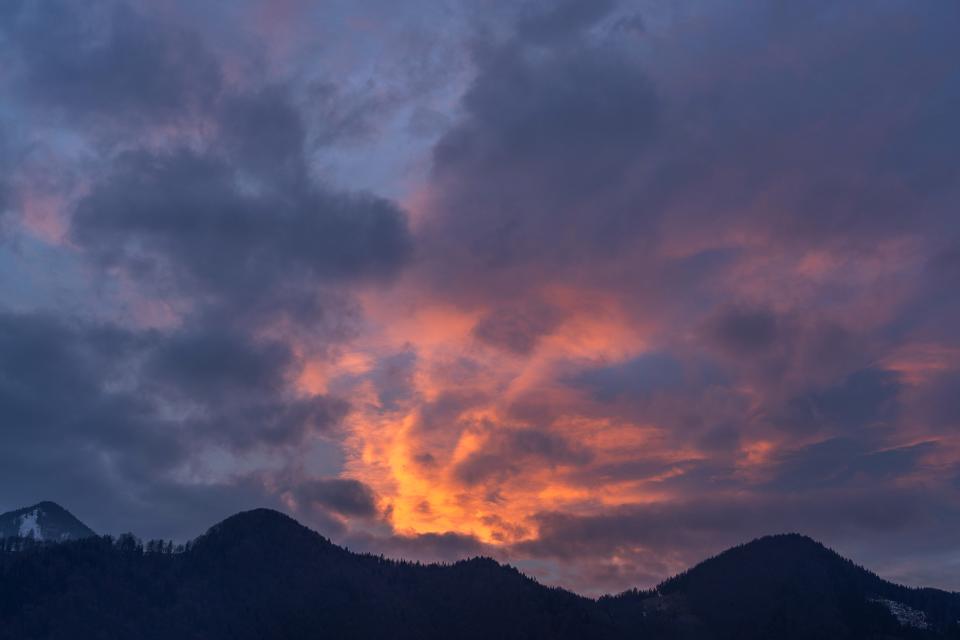 4 Abendwolken leuchten in Orangetönen über dem Zellerhorn |