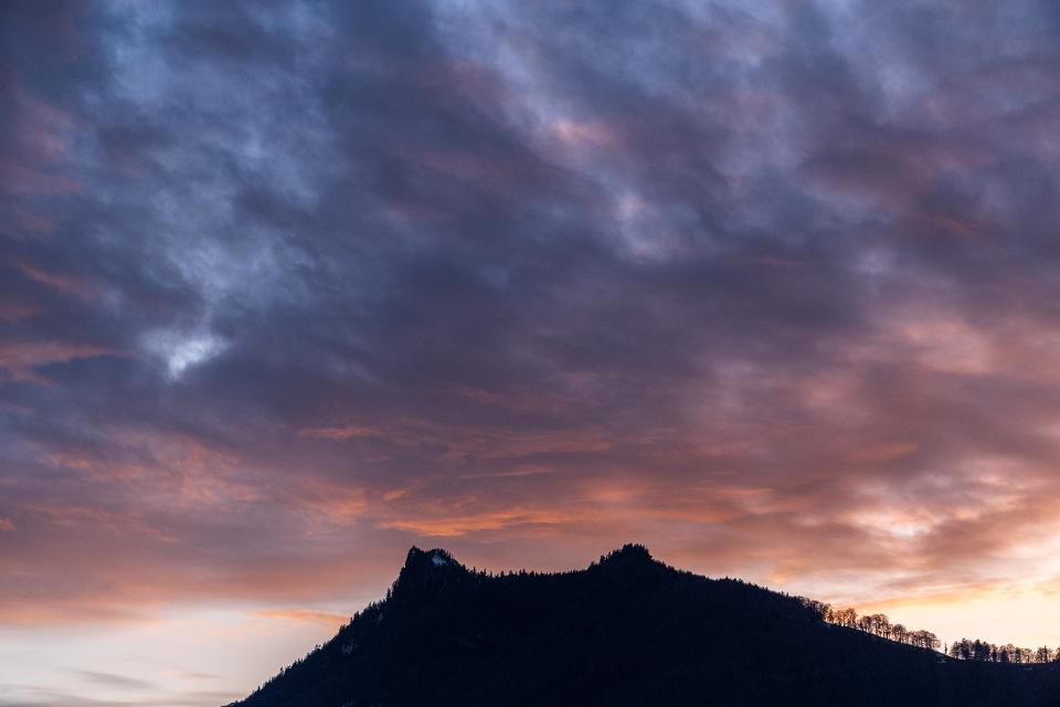 5 Zellerhorn mit orange leuchtenden Abendwolken darüber |