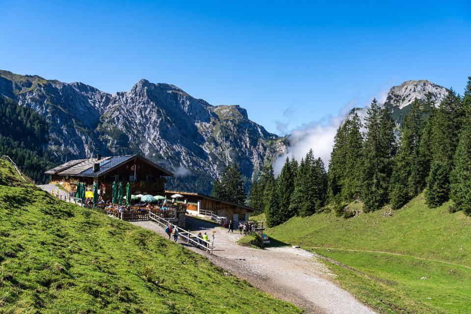|  289 Österreich - Plumsjochhütte - Steiler Aufstieg vorbei am schroffen Bärentalkopf |  290 Österreich - Plumsjochhütte - Teleblick zur Eng Alm mit den Karwendel Wänden dahinter |  291 Österreich - Plumsjochhütte - Urige Plumsjochhütte mit Karwendel Gipfel dahinter |  292 Österreich - Plumsjochhütte - Vorbei an blühenden Wiesen mit Karwendelgipfel Ausblicken |
