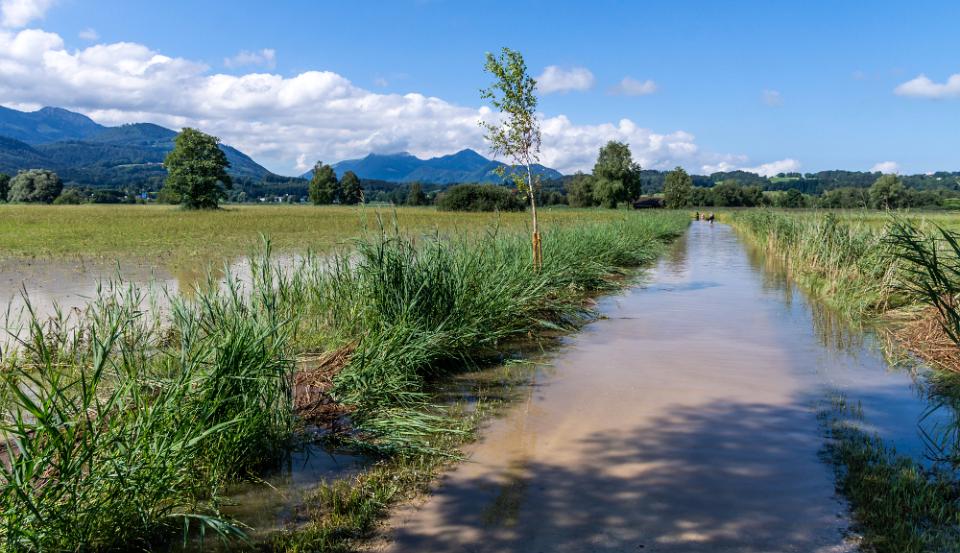 Überfluteter Bereich beim Irscher Winkel in Felden