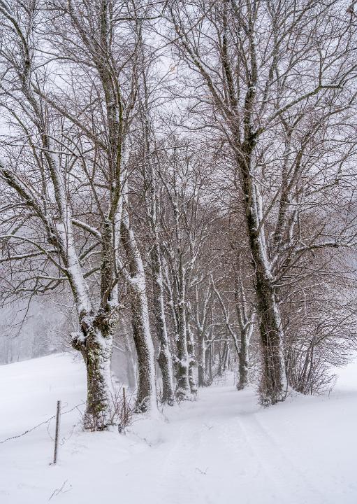 Baumallee am westlichen Ortsrand Aschau im Winterkleid