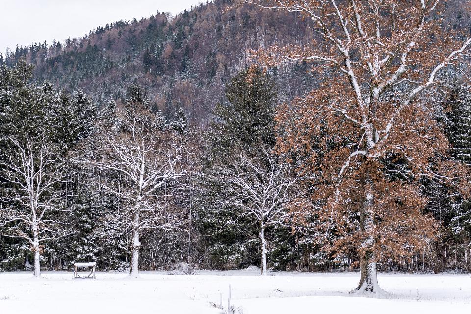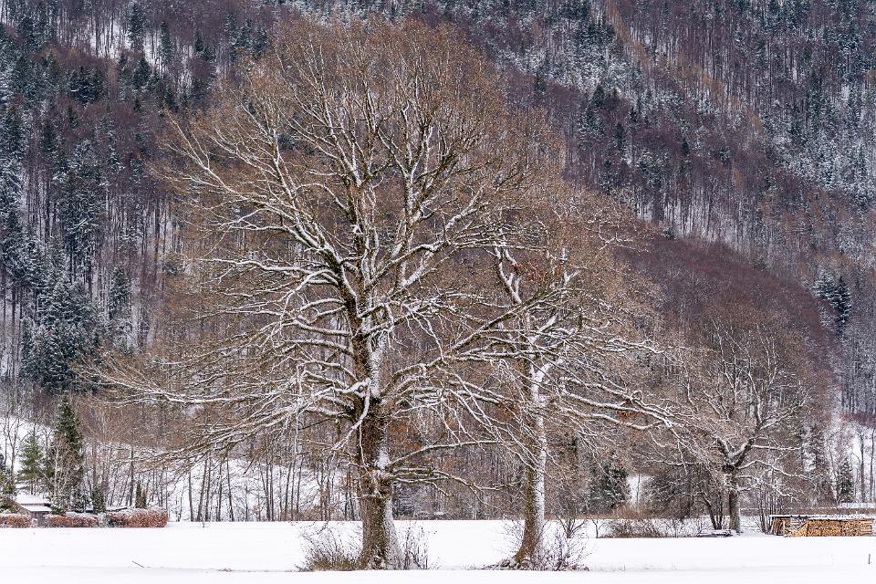 Winterliche Bäume auf der Moorbadwiese bei Aschau